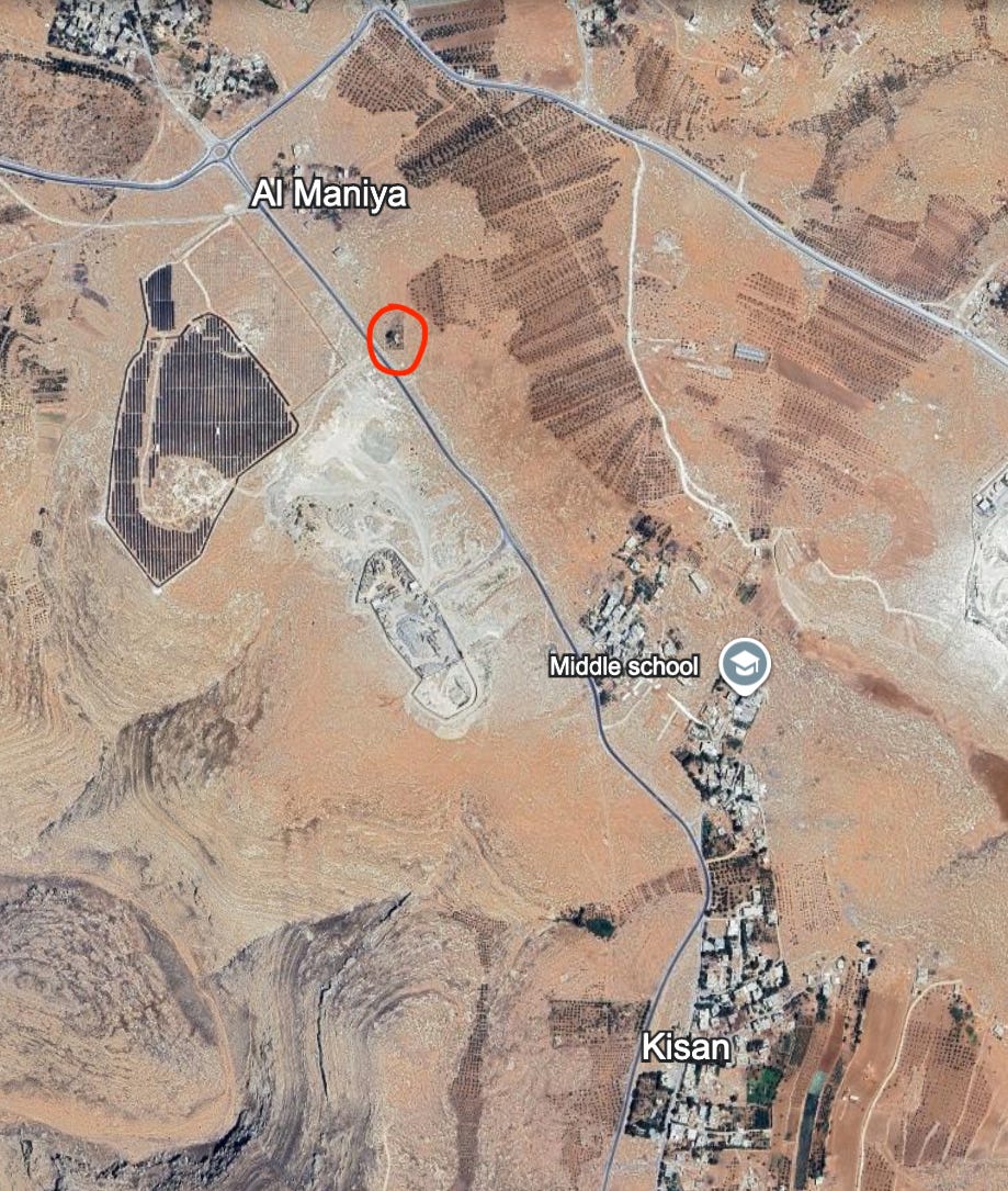 The mosque, more than fifty years old, is located between Adnan’s village of Kisan—located 15 kilometers southeast of Bethlehem—and al–Minya, one and a half kilometers to the north of Kisan. It serves both communities and is used during the holy month of Ramadan and each week for salat al-jum`ah, the Friday afternoon sermon and prayer—mandatory for Muslim men.